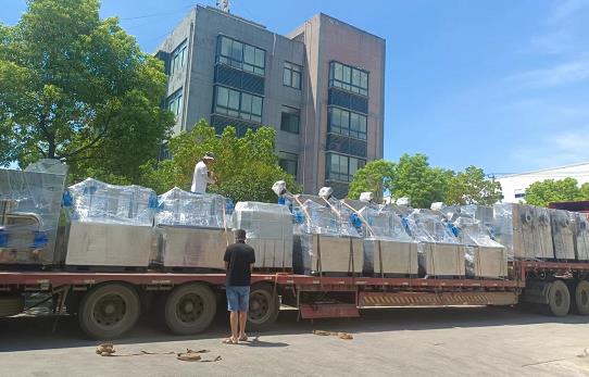8.13日發(fā)貨21套隔油提升設備和18套污水提升設備,設備足足裝滿兩輛大貨車